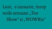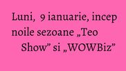 Nu ratati, incepand de luni, 9 ianuarie, „Teo Show”, de luni pana vineri, de la ora 15:00, si „WOWBiz”, de luni pana joi, de la ora 23:00!