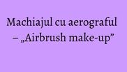 Machiajul cu aerograful, este noua tehnologie de aplicare a fondului de ten. Acesta este pulverizat printr-un pistol special care este atasat unui compresor.