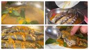 - În cele 6 linguri de ulei de măsline prăjiți peștele presărat cu sare și încrestat pe ambele parți, câte 1 minut pe fiecare parte. Scoate apoi pe o farfurie.