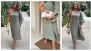Pentru această ocazie, vedeta a optat pentru o rochie cu umărul gol, pe care a accesorizat-o cu o geantă albă, care avea atașat un lanț auriu și o pereche de sandale cu plasă, nude. Alături, Cristina Șișcanu și-a pus o pereche de cercei mici, finuți, aurii.