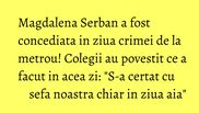 Magdalena Serban, femeia care a ucis-o pe Alina Ciucu, la metrou Dristor, fusese concediata cu cateva ore inaintea crimei.