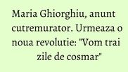 Cerul era de noapte, iar oamenii stateau in strada, dragii mei. Oamenii isi strigau nemultumirile. Prieteni dragi, din pacate, vom trai din nou inca o revolutie. Si nu va fi o revolutie precum cea din 1989, ci va fi una adevarata" a scris Maria Ghiorghiu, pe blogul sau.
