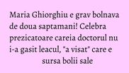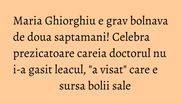 Prezicatoarea Maria Ghiorghiu din Iasi, cea care sustine ca a prevazut tragedia de la Colectiv, dar si mai multe atentate teroriste din ultimii ani, este bolnava.