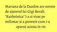 Mariana de la Exatlon are nevoie de ajutorul lui Gigi Becali. L-a si visat pe latifundiar.