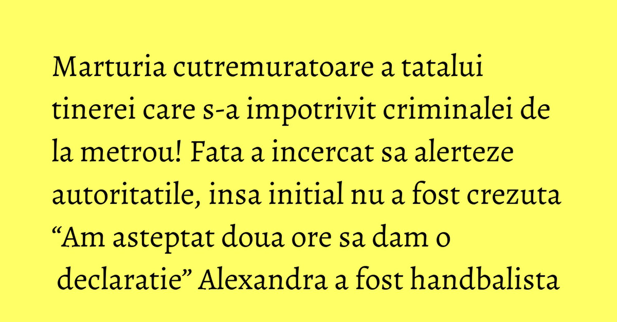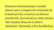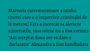 “Am luat imediat legatura cu Alexandra, am intrebat-o ce s-a intamplat, mi-a zis ca cineva a vrut s-o impinga, sa o arunce in fata metroului.