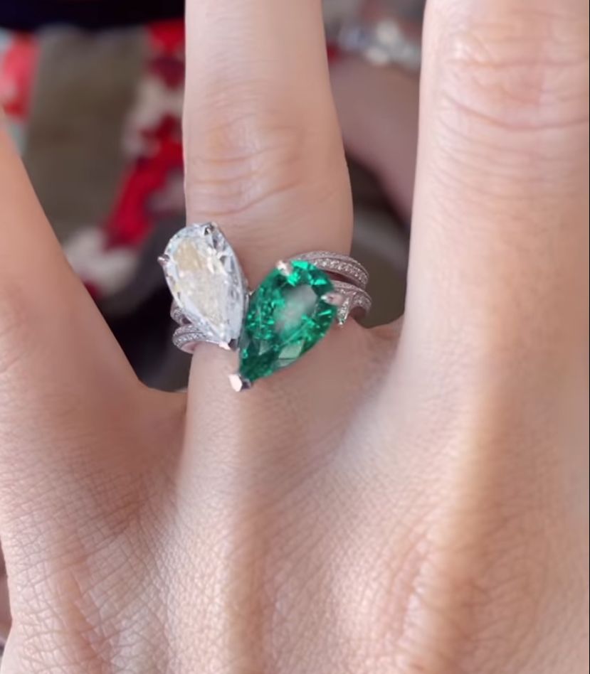 „Da, în această viață și în oricare viață. La adăpostul crengilor sub care ne-am îndrăgostit am întrebat-o dacă vrea să-mi fie soție. Știu că tradiția spune că există un singur inel, însă l-am proiectat împreună cu Stephen Webster încât să fie două pietre: smarald (piatra ei de naștere) și diamant (piatra mea de naștere)”, a