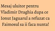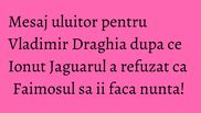 Un fan Exatlon a vrut, insa, sa ii transmita lui Draghia un mesaj. "As fi vrut sa imi faca mie Vladimir nunta, daca tot refuza Ionut. Si eu imi doresc, dar nu am posibilitate", au fost cuvintele barbatului.