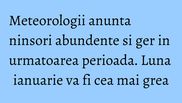 Meteorologii de la Administratia Nationala de Meteorologie anunta ca in perioada urmatoare, vremea va suferi schimbari dramatice. Daca in decembrie nu vom avea temperaturi diferite fata de normalul perioadei, din ianuarie totul se schimba.