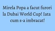 Designerul Mirela Popa (ex-Stelea) s-a numarat printre invitatii de seama de la Dubai World Cup, o competitie celebra de curse de cai ajunsa in acest an la editia cu numarul 20.