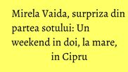 Cel care a pus la cale această escapade romantică a fost soţul Mirelei, care a dorit să-i ofere acesteia două zile de relaxare după o perioadă foarte agitată.