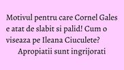 Are niste flash-uri. Imi spunea: 'Ma gandesc la ea, dar nu imi apare in ochi, doar ma controleaza prin niste energii'. Cornel nu si-a revenit, e devastat de aceasta tragica intamplare. Chiar a slabit foarte tare. Noi suntem ingrijorati ca nu mai are pofta de viata", au povestit Georgiana si Silviu Lepadat, prieteni buni ai lui Cornel Gales, scrie WOWBiz.ro.
