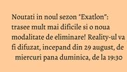 Nu pierdeti, pe 29 august, de la ora 19:30, marea premiera a noului sezon „Exatlon”, reality-ul revolutionar care va va face sa simtiti, de miercuri pana duminica, adrenalina la cote maxime, numai la Kanal D!