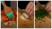 Avem sos de roșii picant, punem puțin ulei de măsline, voi pune sare, verdețuri în stil italian. Conopida nu trebuie opărită prea mult pentru că se înmoaie prea tare și atunci la cuptor se va desface, iar noi nu vrem să se desfacă. O ungem cu acest sos. Am încins cuptorul și o băgăm la cuptor.