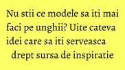 Polka Dotts- pe unghiile vopsite cu un strat de oja neagra aplica cu o pensula subtire buline de diferite culori. Dupa ce punctele s-au uscat aplica un strat de lac transparent pentru un finish lucios.