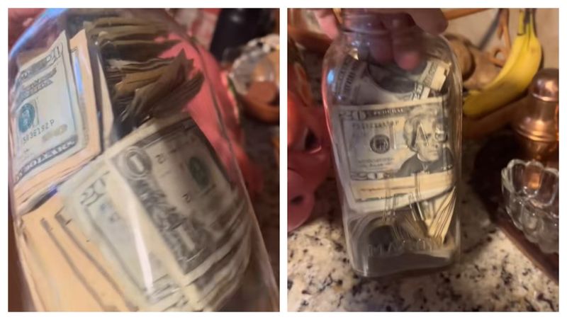 Odată ce a îndepărtat acel capac, femeia avea să găsească un sir de mai multe pungi de plastic, toate legate între ele, dar și bine strânse, fiecare în parte. Mai mare i-a fost surpriza în momentul în care a găsit, în respectivele pungi... chiar teancuri de bancnote! După ce a avut răbdare și a scos tot, pas cu pas, femeia a așezat banii într-un borcan mare, însă nu înainte de a-i și număra, descoperind în total, suma de 2.028