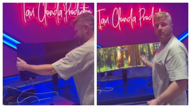 În tot acest timp, fosta prezentatoare TV făcea glume pe baza lui, ținând cont că respectivul monitor era atât de mare, încât semănă cu o navă spațială, mai mult sau mai puțin. Deși nu a vrut să dezvăluie prețul achiziției sale, artistul urmează să își transforme studioul într-un loc și mai bun.Gabriela Cristea: Ce ai făcut, iubire? Ce e cu cuțitul ăla în mână, ce ai comandat aici?
