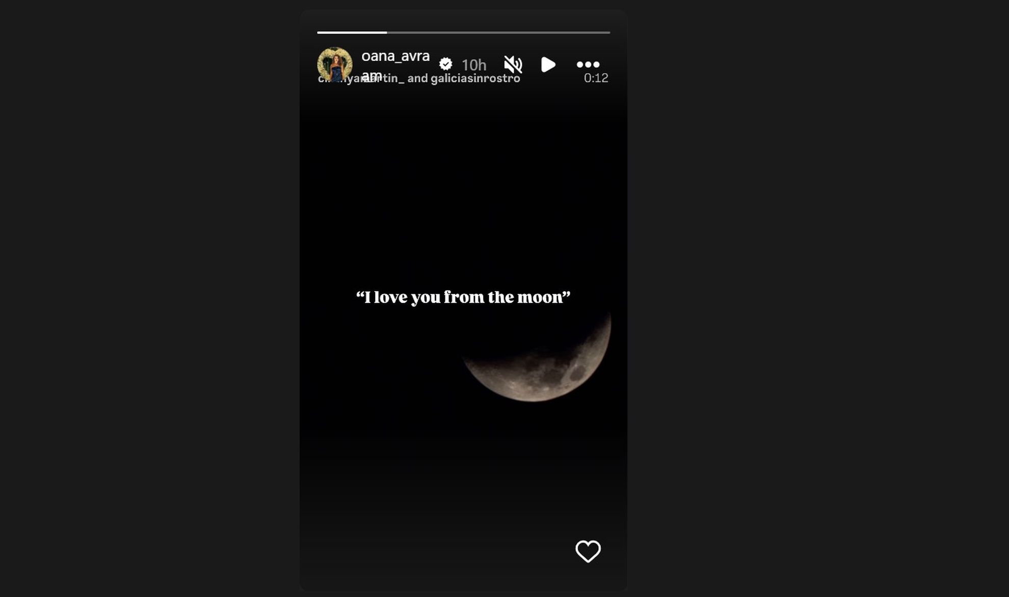 „I love you from the moon” (Te iubesc de pe Lună), a scris Oana Ciocan pe contul său de socializare, semn că momentele grele din cuplu au fost depășite cu succes, iar