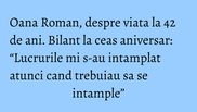 Oana Roman a implinit pe 13 aprilie, frumoasa varsta de 42 de ani. Un motiv bun pentru ca sarbatorita sa organizeze o petrecere de pomina, unde si-a invitat prietenii, dar si o ocazie la fel de buna pentru a trage linie si a face bilantul vietii sale de pana acum.
