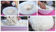 Bunica Gherghina a explicat, pas cu pas, cum pregătește pâinea de casă, pe care mama ei o pregătea în copilărie.