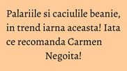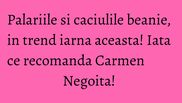 Acum putem purta caciulile beanie. Te duc cu gandul la Strumfii, insa sunt cea mai cool si stylish metoda de a ne feri capul de frig. In plus, aceste beanie hat merg la orice tinuta. Incercati si o sa va convingeti”, scrie Carmen Negoita pe blogul sau de moda.