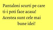Atunci cand temperatura incepe sa creasca, trebuie sa renunti la jeansii tai preferati si sa scoti la lumina pantalonii scurti. Si de ce nu ti-ai diversifica garderoba, facandu-ti singura cateva perechi originale.