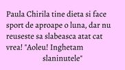"Inghetam toate fricile, toate poftele de dulce, inghetam slaninutele care au mai ramas!", spunea la inceput Paula Chirila.