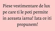 Credeai ce piesele de lux te costa o avere? Ei bine,, iti spunem ca poti cumpara unele cu mai putin bani. Arata senzational si te vor transforma automat in vedeta oricarui loc in care ajungi. Iata ce propuneri avem pentru tine.