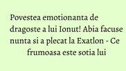 Putini sunt cei care stiu ca Ionut si-a lasat acasa proaspata sotie pentru a participa la competitia Exatlon. “Suntem casatoriti doar de o luna. Nu am avut timp sa ne consumam momentul, sa mergem in “luna de miere”. Imi este foarte greu fara el, mai ales ca niciodata nu am stat asa, la distanta, fara sa stim unul de altul. Iar faptul ca il vad doar la televizor nu ma ajuta cu nimic”, ne-a povestit Nella.