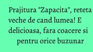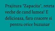 Reteta de prajitura "Zapacita" se poate fi pregatita oricand deoarece se prepara foarte simplu si rapid.