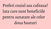 Un studiu, citat de dailymail.co.uk, a dus la concluiza ca o ceasca de cafea pe zi nu are nici beneficii globale pentru sanatate, dar nu a facut nici rau, in timp ce ceaiul a avut insa beneficii clare.