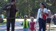 Alina Pușcaș, în parc cu Mihai Stoenescu și doi dintre copii, la câteva zile după căsătoria secretă
