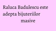 “O am de vreo 2 ani. Am primit-o cadou de la sotul meu, Florin, de ziua mea. Bratara nu este dintr-un metal pretios si nici pietrele nu sunt valoroase. Bijuteria poarta semnatura unei case de moda cunoscuta, are doar valoare sentimentala si este foarte frumoasa. O port cu drag ori de cate ori o pot asorta tinutei mele”, ne-a declarat Raluca Badulescu.