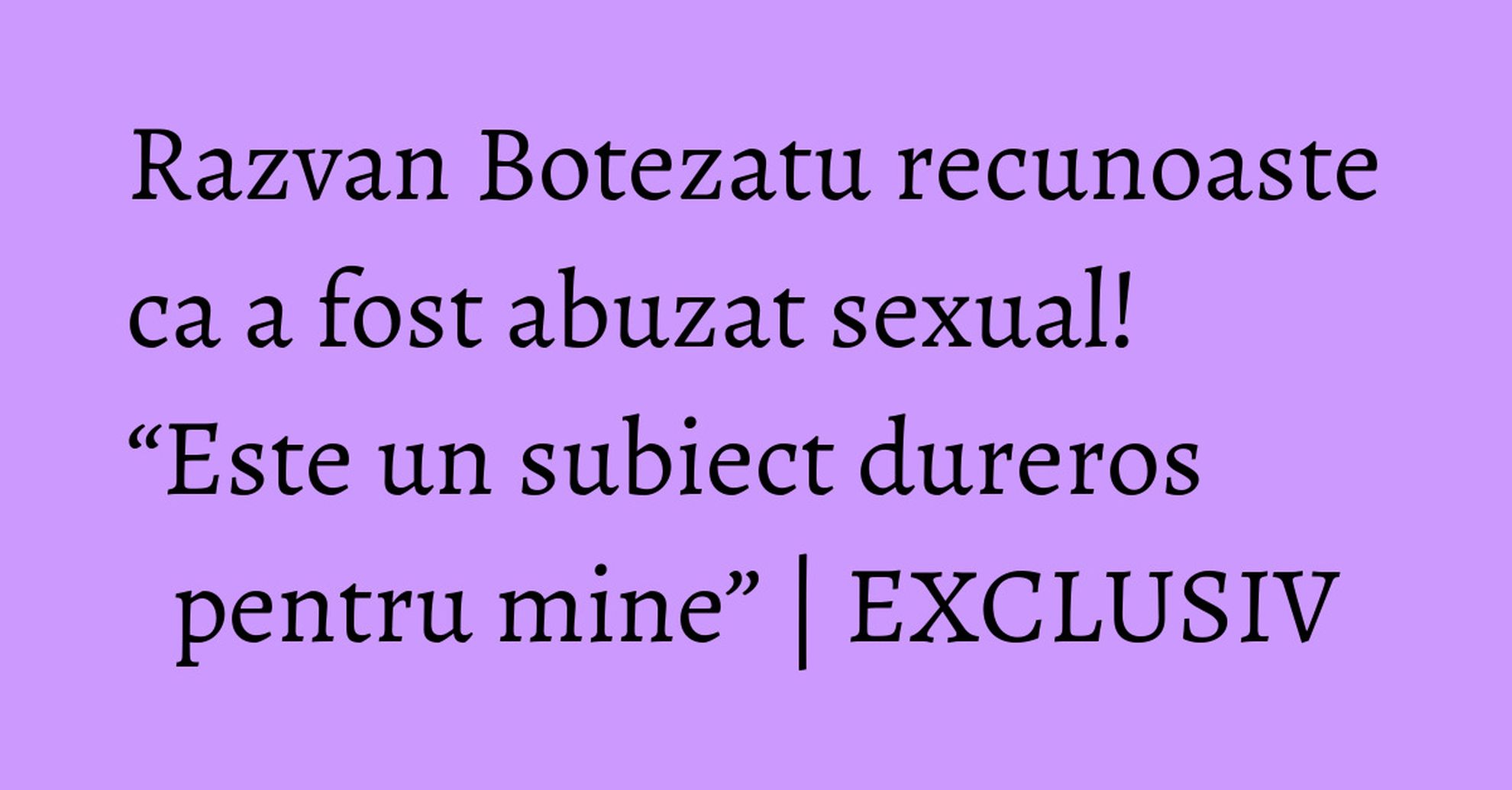 WOWbiz.ro a dezvaluit, in exclusivitate, ca vedeta tv Razvan Botezatu a fost, in copilarie, victima unui abuz sexual greu de descris in cuvinte, simpaticul prezentator avand, la acea vreme, doar 10 ani. Si, chiar daca este un subiect extrem de sensibil, Razvan Botezatu a recunoscut ca problemele cu pricina chiar au avut loc.