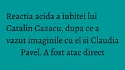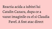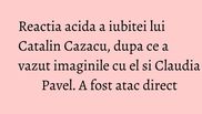 Apropierea dintre Catalin Cazacu si Claudia Pavel a starnit semne de intrebare, iar unii chiar cred ca intre ei e o relatie in adevarul sens al cuvantului si nu numai una de colegialitate sau prietenie. Iubita lui Catalin Cazacu a tinut sa o atace subtil pe Claudia Pavel.
