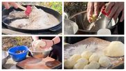 - Găluștele le-am terminat de făcut. Apa începe să fiarbă, o să le punem îndată la fiert. Știm că sunt gata atunci când s-au ridicat deasupra.