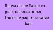 Astazi iti prezentam o reteta de salata cu piept de rata afumat, fructe de padure si varza kale.