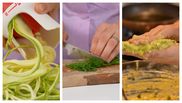 Chef Roxana Blenche a explicat, pas cu pas, modul de preparare al rețetei. După ce a spălat bine legumele, chef Roxana Blenche a dat pe răzătoarea dovleceii, apoi a continuat cu restul ingredientelor.