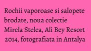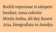 Designerul Mirela Stelea celebreaza sezonul estival cu lansarea noii colectii cu nume exotic: Ali Bey Resort 2014, realizata din matasuri fine imprimate si bumbac cu aplicatii delicate de broderie.