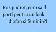 Chiar daca vremea de afara este capricioasa, noi iti propunem sa iti schimbi singura starea de spirit si sa te pregatesti inca de pe acum pentru noul sezon! Inspiratia momentului este rozul pudrat, o nuanta fragila si delicata, pe care o asociem cu bomboanele fondante, macarons, bobocii de trandafiri si “pantera roz”. Aceasta nuanta se poarta atat in privinta paletei de farduri, cat si a nuantelor de par, dar cel mai usor este sa o inlcuzi in garderoba ta prin piese vestimentare diafane care sa iti contureze o imagine feminine si boema.