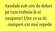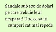 Sandalele sunt piesele de incaltaminte care nu trebuie sa iti lipseasca niciodata, asa ca ne-am gandit sa-ti dam cateva sugestii. Am ales unele cu talpa, altele fara, in care cu siguranta te vei simti confortabil.