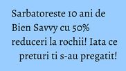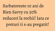 Pentru ca ai fost alaturi de Bien Savvy timp de 10 ani frumosi, in care te-ai bucurat, te-ai redescoperit si ai trait impreuna cu Bien Savy clipe emotionante, acest eveniment se sarbatoreste impreuna cu tine.