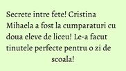 Cristina Mihaela a mers la cumparaturi, apoi, cu Maria si Sofia. Le-a dat amandurora sfaturi si le-a ajutat sa compuna doua tinute cool, dar cuminti, perfecte pentru o zi de scoala, scrie WOWBiz.ro.