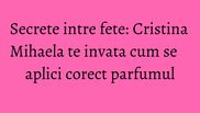 "Astazi vom vorbi despre parfum, fara indoiala cel mai cunoscut produs cosmetic. Nu uitam niciodata sa il aplicam inainte de a iesi din casa. Insa uneori il folosim gresit. Fie aplicam prea mult, fie prea putin sau in locuri total nepotrivite. O sa va arat cum sa pulverizati corect parfumul. Specialistii spun ca este bine sa pulverizam parfumul la incheietura mainii, apoi sa ducem mana la gat. Nu direct pe gat, e gresit! Un alt obicei gresit este sa freci incheieturile mainilor dupa ce l-ati aplicat! Daca faci asta, ii distrugi notele de varf.