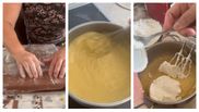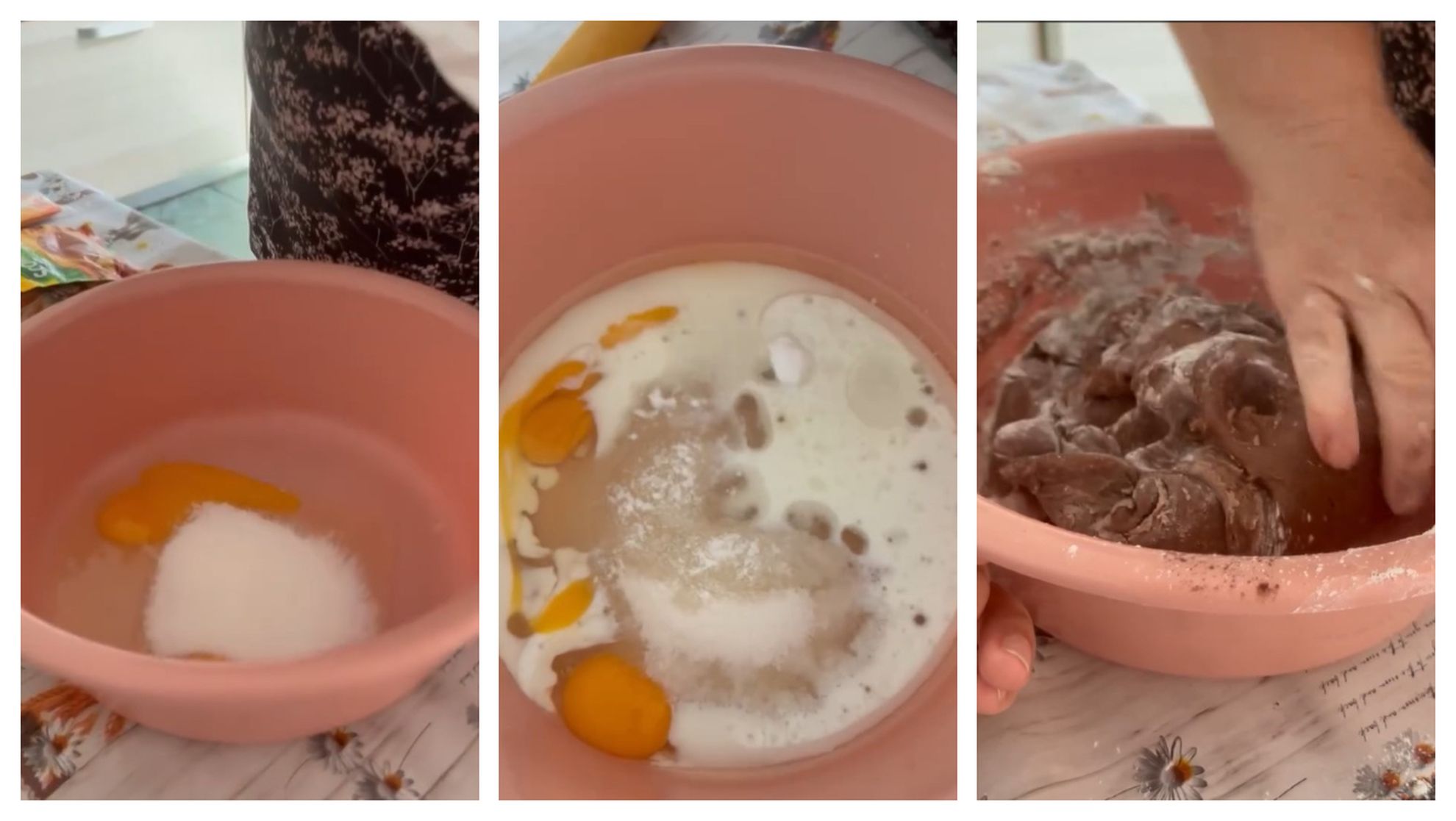 “V-am promis rețeta mătușii Geta, așa că hai să facem cea mai bună prăjitură pe care am mâncat-o, foi Geta. Avem nevoie de un ou cu două gălbenușuri sau două ouă, 10 linguri de zahăr, 10 linguri de ulei, 10 linguri de lapte, o linguriță de amoniac pentru prăjituri, trei linguri de cacao, două plicuri de zahăr vanilat, o lingură mare de scorțișoară. Amestecăm cu ajutorul unui tel totul foarte bine, până se omogenizează.