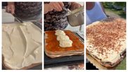 După ce punem mascarpone, punem și frișcă. Punem prima foaie la bază. Noi am împărțit compoziția să punem câte 7 linguri sănătoase de cremă pe fiecare foaie. Deci am pus cremă, s-a pus foaie, se pune cremă, se întinde, se pune foaie, după care se pune gem de caise. Să puneți din belșug, este foarte bun, peste gemul de caise venim din nou cu cremă. Întindem crema, după care punem din nou foaie. Punem toată crema în care ne-a mai rămas. Și decorul la final puteți să-l faceți cum vreți voi, noi am pus ciocolată răzuită, trebuie s-o lăsați peste noapte la frigider, deci o zi la frigider. Acesta este rezultatul final prăjitura foi Geta care este absolut demențială", a explicat Roxana Blenche.