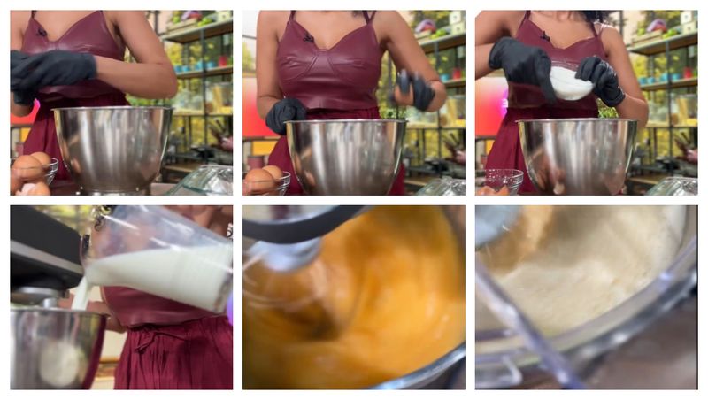 - Amestec laptele cu ouăle, zahărul și vanilia.