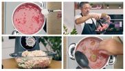 Chef Sorin Bontea a început prin a da toate roșiile prin mașină, pentru a obține un suc proaspăt, care va sta la fiert, iar cât acestea fierb, se ocupă și de chifteluțe.