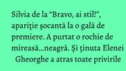Doua dintre cele mai interesante apariţii au fost, fără doar şi poate, Elena Gheorghe, care a purtat o rochie scurtă, superbă, de efect, semnată Ana Radu, şi Silvia, câştigătoarea primului sezon al supershow-ului "Bravo, ai stil", dar şi a trofeului "Bravo, ai stil! All Stars".