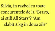 “Ii asigur pe cei care ma detesta, cu argumente, ca sunt departe de a fi incantata de mine insami. Fiecare isi stie mai bine defectele decat i le stiu dusmanii. Va multumesc pentru fiecare sugestie, credeti-ma ca incerc sa ignor piesele imobiliare si imitatiile. Dar nu stiu daca imi va iesi pentru ca e atat de gros obrazul unora. Nu v-ati dori sa fiti in locul meu, sa aveti parte in fiecare zi de acelelasi personaje inerte intelectual si stilistic vorbind. Credeti-ma ca stati bine in fotolii acasa! Am slabit 2 kg in doua zile", le-a raspuns Silvia celor care o critica.