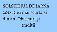 SOLSTIȚIUL DE IARNĂ 2018. Solstiţiu înseamnă "soare nemişcat" şi marchează prima zi a iernii astronomice în emisfera nordică, cea mai scurtă zi şi cea mai lungă noapte a anului în emisfera nordică.